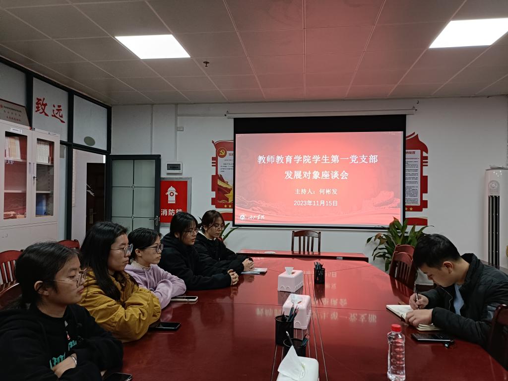 11月15日,万象城awc官网登录入口学生第一党支部在格致楼712党员活动室召开发展对象座谈会。