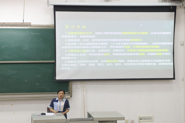 随后,学前教育系系主任黄怡冰、初等教育系系主任莫燚、秘书贺栎蓉老师分别介绍学前教育、小学教育专业的实习内容和要求以及实习系统填报注意事项。