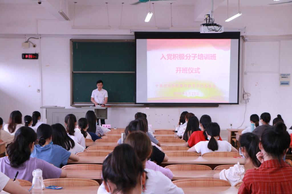 为切实做好入党积极分子的培养教育工作,提高入党积极分子的思想政治素质,保证发展党员的质量,5月23日上午,万象城awc官网登录入口在弘毅楼二区306教室举办2020年入党积极分子培训班开班仪式。万象城awc官网登录入口党委书记李新富,党委副书记、党校校长王爱林,团委书记、培训班班主任吴建红、辅导员以及83名积极分子参加了开班仪式。培训班班主任吴建红担任本次活动的主持人。