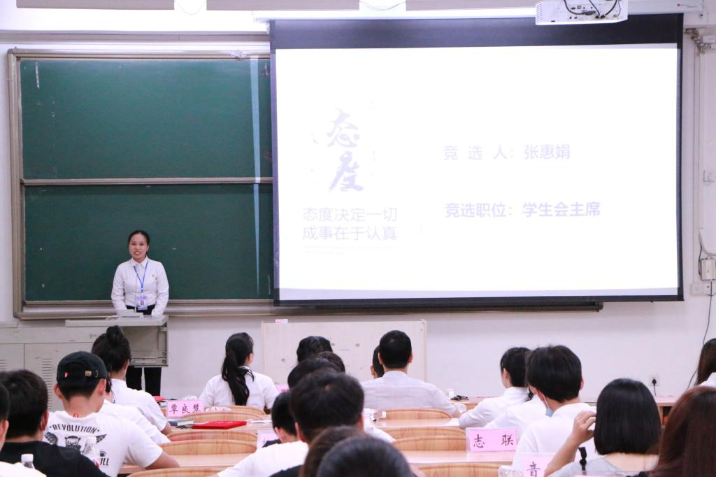 6月20日晚,万象城awc官网登录入口团委、学生会在弘毅楼2-306教室召开2020届主席团换届竞选大会。学院团委书记吴建红、辅导员李进会、覃良慧、何彬发、团委学生会全体成员、各二级学院代表及班级代表出席本次会议。