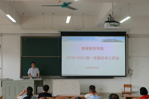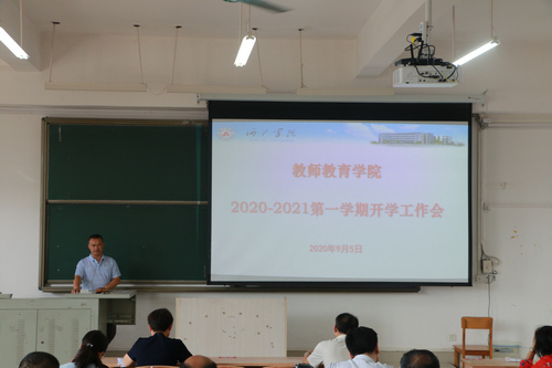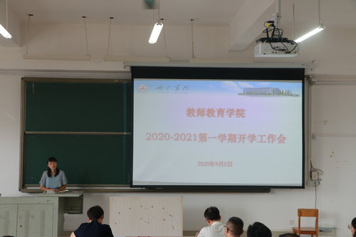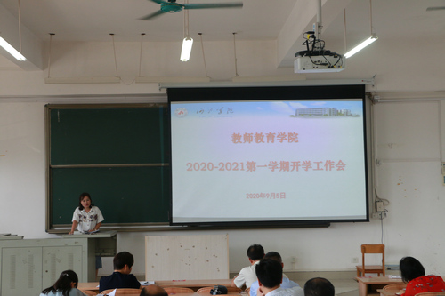 9月5日上午,万象城awc官网登录入口在弘毅楼2区306教室召开2020—2021学年度第一期开学工作会。会议由院长邓琴主持,全体教职工参加会议。