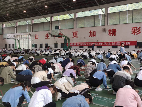 努力践行“实践取向”基本理念,加强万象城awc官网登录入口师范生的教师基本技能,不断提高万象城awc官网登录入口人才培养工作水平,进一步落实整体转型发展工作,突出基础教育教师培养的教育特色,实现培养合格的基础教育教师的目标,2020年9月8日至27日,万象城awc官网登录入口举行2020年师范生教师基本技能考核。考核对象为2017级本科、2018级专科、16级小教五年制的学生,分为小学教育专业组和学前教育专业组进行考核。考核内容是教师口语、幼儿故事讲述、三笔字、幼儿歌曲弹唱、简笔画、儿童歌曲演唱、儿童舞蹈、列队和体操等。