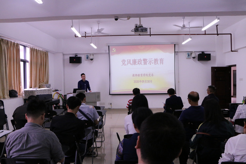 学院党委副书记、纪委书记王爱林在会议上传达了广西通报的7起违反中央八项规定精神典型问题,他强调加强党风廉政建设对强化党的执政基础和巩固党的执政地位具有至关重要的作用,我们需要有清醒的认识和高度的责任感,牢记立德树人的根本任务和“学高为师,身正为范”的教育箴言,紧绷树牢底线意识和红线意识,为树立好的作风不懈努力。