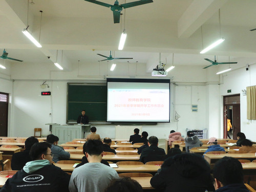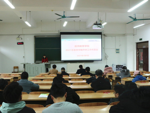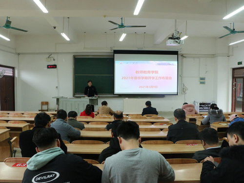3月9日,万象城awc官网登录入口在弘毅楼2区307教室召开2021年春季学期开学工作布置会。学院全体教职工参加会议。会议由学院院长邓琴主持。