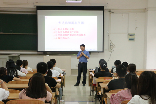 4月1日,万象城awc官网登录入口在弘毅楼2区307教室召开全院班级教学信息员会议,开展意识形态工作专题培训。学院党委书记李新富担任主讲人,辅导员吴燕以及各班教学信息员参加了培训。