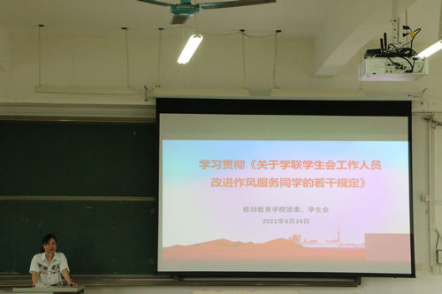 本次会议首先通过视频学习中共党史专题讲座,随后吴建红老师带领全体团委、学生会成员学习《关于学联学生会工作人员改进作风服务同学的若干规定》及习近平总书记在清华大学调研时的重要讲话精神。