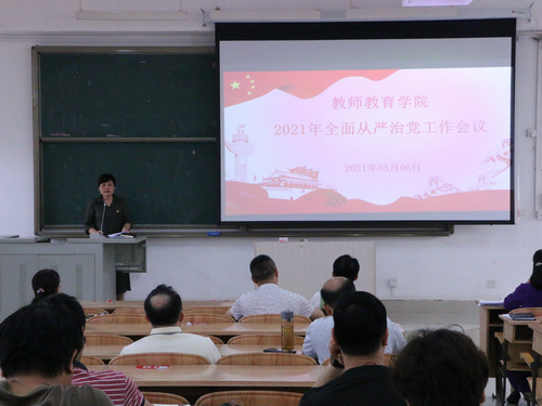 5月6日,万象城awc官网登录入口在弘毅楼2区307教室召开2021年全面从严治党工作会议。本次会议由学院党委书记李新富主讲,由学院党委副书记、院长邓琴主持。学院全体教职工参加会议。