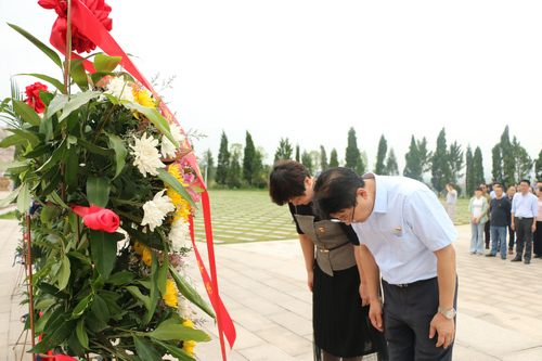 5月22日中午,万象城官网教职工来到湘江战役纪念馆,该纪念馆以史实为依据,以丰富的图片、展板、实物及逼真的故事场景为主体,再现了当年红军长征到达桂北、血战湘江时的艰苦岁月和英勇顽强的革命精神。领导老师跟着讲解员,听着一个个红军先烈们抛头颅、洒热血的英雄故事,看着一个个栩栩如生的战斗画像,仿佛置身于那个战火纷飞的年代里,无不为这样浴血奋战、拼搏献身的场景所深深打动和震撼。随后,领导老师来到凭吊广场,肃穆而立,敬献花篮。党委书记李新富、党委副书记/院长邓琴整理缎带,带领全体教职工行三鞠躬礼,并带领党员重温入党誓词。