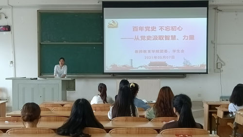 在课上,吴建红老师主要从中国党史概述、追梦路上中国人、追梦路上广西人、汲取智慧和力量四个方面带领团委、学生会全体成员回顾中国共产党百年奋斗历程,追忆革命烈士的丰功伟绩。吴建红在课上强调,百年党史不仅是我们党走过的苦难辉煌, 更是百年大党初心使命的集中体现、精神谱系的真实写照, 是指引我们党永葆生机活力、实现中华民族千秋伟业的动力源泉。吴建红勉励同学们要认真学党史,从党的百年辉煌历程中汲取智慧和力量,继承先辈们的遗志,树立以爱国主义为核心的民族精神。