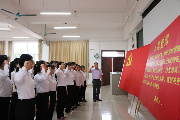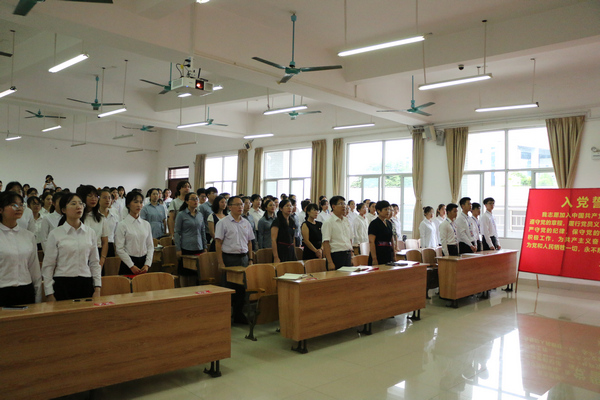 院党委副书记、院长邓琴在致词中表示,进行入党宣誓对于预备党员来说,这是最实际、最生动的党的观念教育,也是进行自我教育的好形式。入党宣誓,是党员政治生命开始的象征,是非常庄重、严肃的事情。党旗代表了党,誓词概括了党对党员的要求,也概括了党员对党组织和党的事业应承担的政治责任,而且有很强的针对性,有重大的教育意义。希望党员和预备党员们终生记住今天,终生用誓言来激励自己,在今后工作中,克服自身存在的缺点和不足,随时准备为党和人民的利益牺牲一切,成为一名合格的共产党员。
