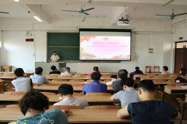 在会上,学院党委书记李新富以“抓好学习,促进工作——深入学习习近平总书记在庆祝中国共产党成立100周年大会上的重要讲话精神”为题做辅导报告。他首先带领全体教职工学习大会重要讲话精神,随后就学习方面提出三点要求:一是要把学习大会讲话精神,作为当前及今后一段时期的重要政治任务,统一思想;二是要把学习大会讲话精神,融入当前正开展的党史学习教育中,兴起学习新热潮;三是要结合实际创新形式,把讲话精神学深悟透,将学习的成果转化为工作新业绩。李新富强调,“十四五”时期是我们学院发展的又一个关键机遇期,学校对我们给予厚望,我们全体老师要以党史学习教育为契机,发扬伟大建党精神,贯彻人民中心理念,昂扬奋进,担当作为,推动教院高质量发展,不断书写教院新的辉煌。