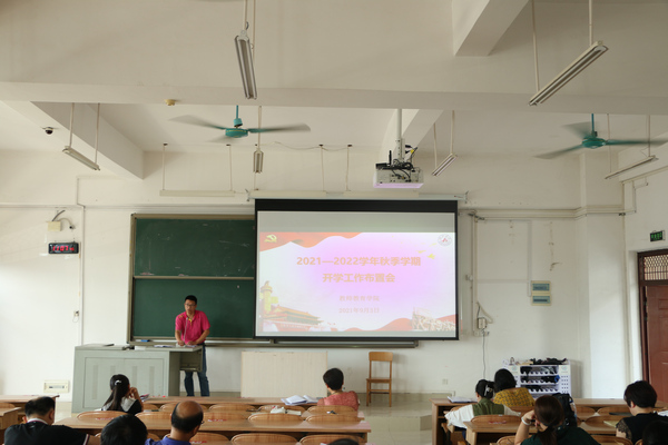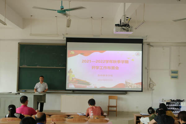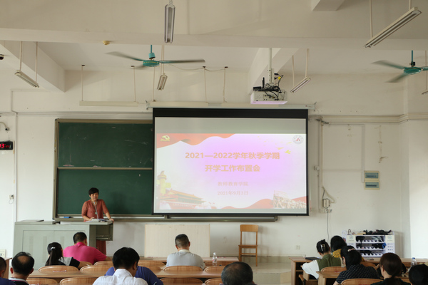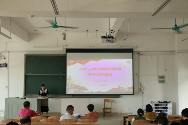 9月3日上午,万象城awc官网登录入口在弘毅楼2区307教室召开2021—2022学年秋季学期开学工作布置会。会议由院长邓琴主持,全体教职工参加会议。