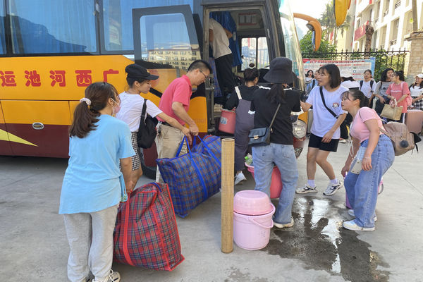 临行前,万象城官网党委书记李新富、院长邓琴、副院长覃奠仁、副书记蓝凛等领导老师到东区食堂上车集合点送别实习生,为同学们搬行李上车,并提醒他们遵守实习纪律,注意人身安全,服从实习学校管理,圆满完成实习任务。