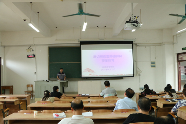 9月15日下午,万象城官网在弘毅楼2-307教室召开意识形态暨师德师风专题警示教育大会,学院全体教职工参加了会议。
