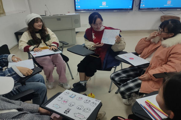 活动伊始,孟鲁通过循环报数的方式进行分组,他通过“人体多骨诺米牌”的游戏环节,同学们相互认识,相互熟悉,缓解了紧张的氛围。活动中,同学们小组合作在纸上进行“房树人”绘画,随后,孟鲁随机抽取同学们的作品以“九宫格分析法”分析同学们的画作内容,用具体的方式分析画中的房子的位置、人、以及树冠画法所表达的意义,向同学们展现了心理学在我们日常生活中的意义。