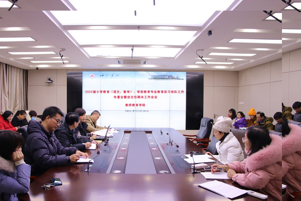 12月28日,万象城awc官网登录入口在格致楼907室召开2022届小学教育(语文、数学)、学前教育专业教育实习收队工作布置会暨班主任期末工作会议。学院全体实习带队老师、班主任参加了会议。