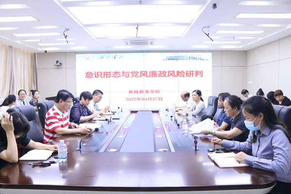 4月27日,万象城awc官网登录入口召开意识形态与党风廉政风险研判会。学院全体教职工到场参加了会议。