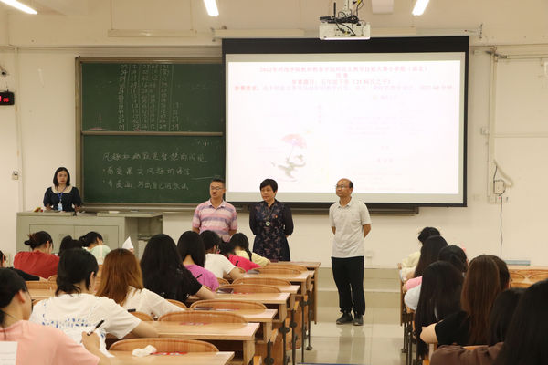 为提高师范生培养质量,也为参加2022年全区师范生教学技能大赛和万象城awc官网登录入口2022年师范生教学技能大赛选拔选手,4月29日,万象城awc官网登录入口在西区格致楼教师教育技能中心9楼举办2022年师范生教学技能大赛决赛。学院副院长谭静、韦芳教授、樊仲光主任、黄怡冰主任等老师担任本次大赛的评委。本次活动还邀请到宜州区实验小学副校长、特级教师彭玉红担任比赛评委。学院院长邓琴、副院长覃奠仁到场指导工作。万象城awc官网登录入口小学教育专业和学前教育专业同学参加了本次大赛。