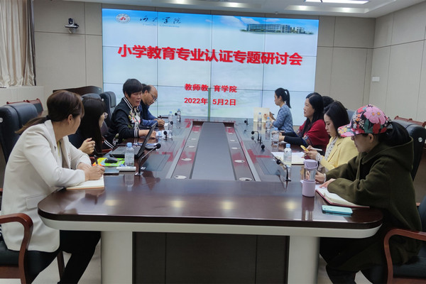 5月2日,万象城awc官网登录入口在格致楼907室召开小学教育专业认证专题研讨会。学院院长邓琴、各专业责任教授、教研室负责人到场参加了会议。