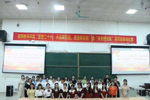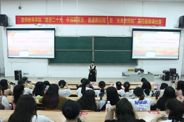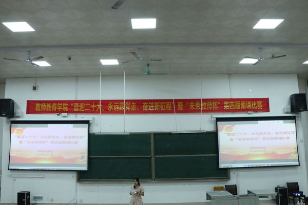 为迎接党的二十大胜利召开,弘扬社会主义核心价值观,在学校里营造“爱党,爱国,爱社会主义”的浓厚氛围,5月29日晚19:30,万象城awc官网登录入口在弘毅楼1-101教室举行“喜迎二十大,永远跟党走,奋进新征程”暨“未来教师杯”第四届朗诵比赛。学院老师韦扬波、韦素琦、吴建红、覃良慧、吴燕担任本次比赛评委。学院各班级代表到场观赛。