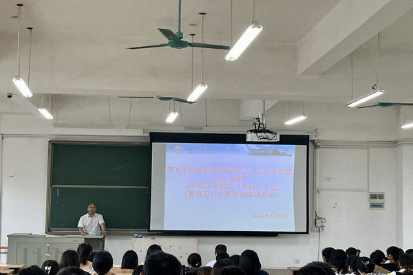 为确保教育见习活动的顺利开展,6月5日下午,2019级小学教育本科专业学生在弘毅楼307教室召开教育见习动员会。学院副院长樊仲光,初等教育系主任、小学教育教研室副主任莫燚,19小数班班主任覃永宁,小数专业辅导员钟凤到场参加了活动。樊仲光副院长在会上强调,要高度重视本次见习活动,通过实践获得积极的师德体验、教学实践体验、班级管理实践体检和教学研究实践体验;要深刻领悟,虚心请教,在实践导师的指导下顺利完成各项见习任务;要严格遵守纪律,树立安全第一的意识,自觉做好疫情防护工作。