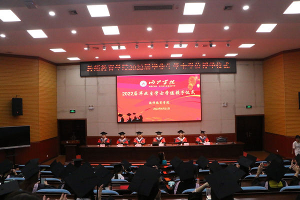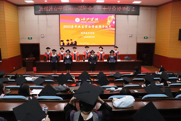 时光飞逝,岁月如梭,转眼又一届学生即将离开美丽的母校,翻开他们人生新的篇章。6月21日晚,教师教育在弘毅楼1-205举行2022届毕业生学士学位授予仪式。学院党委书记李新富、院长邓琴、副书记郭英莉、副院长梁芳美、副院长樊仲光、副院长尹晨祖、教研室主任、2022届毕业生及非毕业班代表共同出席了活动。樊仲光副院长主持本次学士学位授予仪式。