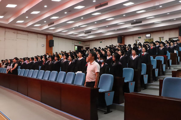 学位授予仪式在庄严的国歌声中拉开帷幕,随后,在悠扬的音乐声中,学院领导班子为毕业生拨正流苏,授予学位,颁发证书,并与每一位学士学位获得者合影留念。副院长樊仲光在总结时希望毕业生能够将在大学学习所得作用于实践,沐浴着党的春风,带着母校的殷切希望和无限关注,把个人发展同国家命运、民族前程紧紧联系在一起,以积极进取、奋发向上、勇担责任的奋斗姿态去描绘宏伟蓝图,书写精彩人生。