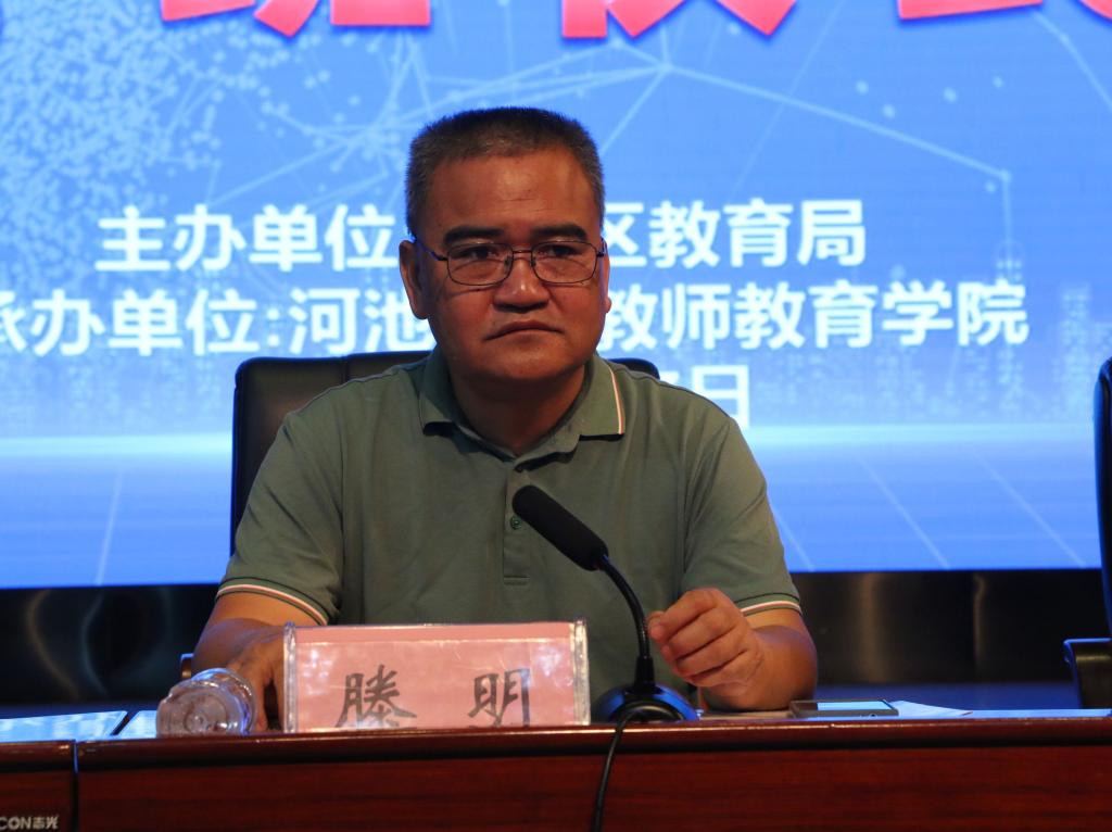 滕明介绍了宜州区中小学幼儿园教育工作情况,阐述了新入职教师岗前培训的目的和意义,勉励学员要认真学习,加强沟通交流,遵守培训纪律,做好疫情防控措施,并对参训学员提出了四点希望:一要做一名有理想信念的好老师,甘于奉献,爱岗敬业;二要做一名有道德情操的好老师,身正为范,为人师表;三要做一名有扎实学识的好老师,树立终身学习理念;四要做一名有仁爱之心的好老师,热爱教育事业,关爱学生成长,努力成为宜州区教育事业的参与者、推动者、贡献者。