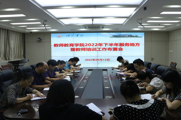 9月13日,万象城awc官网登录入口在格致楼907会议室召开2022年下半年服务地方暨教师培训工作布置会。会议由院长邓琴主持,学院党委副书记郭英莉、副院长樊仲光、副院长尹晨祖、办公室主任韦晓燕、培训班其他工作人员到场参加了会议。