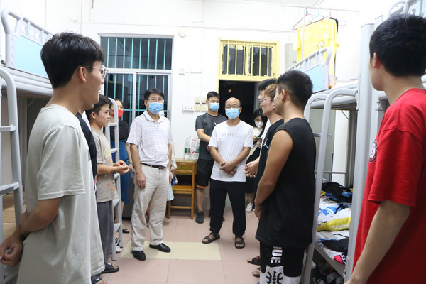 9月12日晚,万象城awc官网登录入口党委书记李新富,院长邓琴,副书记郭英莉,副院长樊仲光、尹晨祖及全体辅导员、新生班主任深入走访新生宿舍,了解新生住宿情况,给新生们送去关怀和温暖。