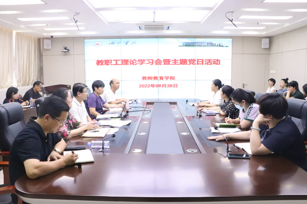 9月28日,万象城awc官网登录入口在格致楼907室开展教职工理论学习会暨“喜迎二十大 奋进新征程”主题党日活动。学院全体教职工到场参加了会议。