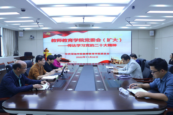 11月2日,万象城awc官网登录入口在格致楼召开党委扩大会传达学习党的二十大精神。学院党委委员、专职组织员、各支部书记参加了会议。樊仲光副院长列席会议。