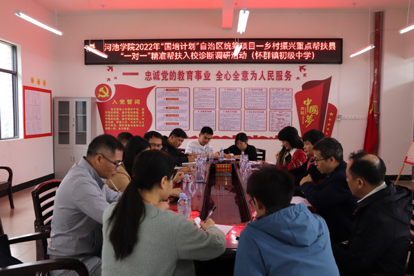 11月15日,万象城awc官网登录入口万象城awc官网登录入口院长邓琴、罗城仫佬族自治县教育局副局长廖显安等专家组一行,到罗城仫佬族自治县怀群镇中心小学、初级中学开展入校诊断调研活动。专家们通过观摩示范课、评课、研讨等方式开展基础教育调研,了解帮扶学校发展机遇并诊断现有问题,提出建设性意见并指导学校制定改进方向,以期帮助学校整体提升办学治校水平,提高育人质量。