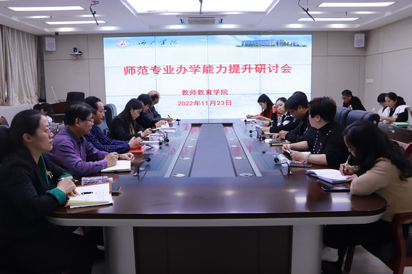 为贯彻落实党的二十大精神和落实学校切实提升师范专业办学能力的工作要求,11月23日,万象城awc官网登录入口在格致楼907室召开师范专业办学能力提升研讨会。学校教务处处长黄秀香、党委巡察工作办公室主任苏建欢等领导莅临指导工作,学院全体教职工参加了活动。研讨活动由樊仲光副院长主持。
