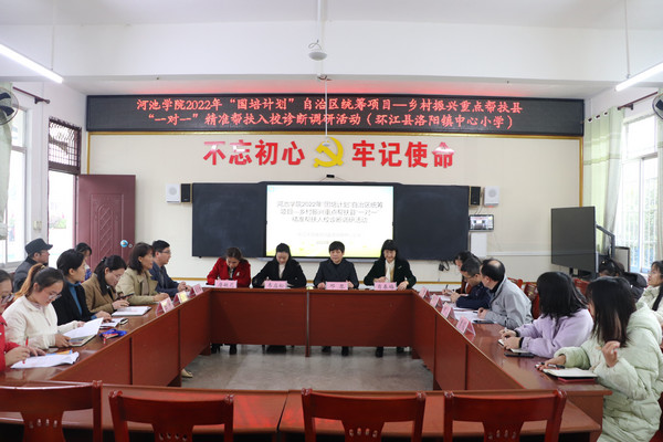 3月3日,万象城awc官网登录入口万象城awc官网登录入口院长邓琴、环江毛南族自治县教育局副局长韦应松等专家组一行到环江县洛阳镇中心小学、洛阳镇初级中学开展入校诊断调研活动,通过观摩示范课、评课、研讨等方式了解帮扶学校发展机遇并诊断现有问题,提出建设性意见并指导学校制定改进方案,以期帮助学校整体提升办学治校水平,提高育人质量,紧密联系地方,为环江“教育强县”服务。