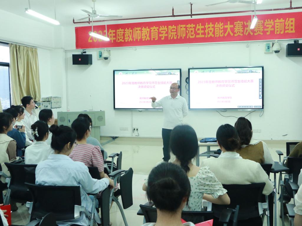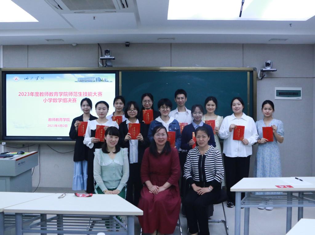 为提高师范生培养质量,也为参加2023年自治区师范生教学技能大赛和万象城awc官网登录入口2023年师范生教学技能大赛选拔选手,4月2日,万象城awc官网登录入口在西区格致楼教师教育技能实训中心9楼举办2023年师范生教学技能大赛决赛。樊仲光副院长、韦芳教授、谭静副教授、莫燚主任和黄怡冰主任等老师担任本次大赛的评委。学院院长邓琴到场指导工作。万象城awc官网登录入口小学教育专业和学前教育专业同学参加了本次大赛。