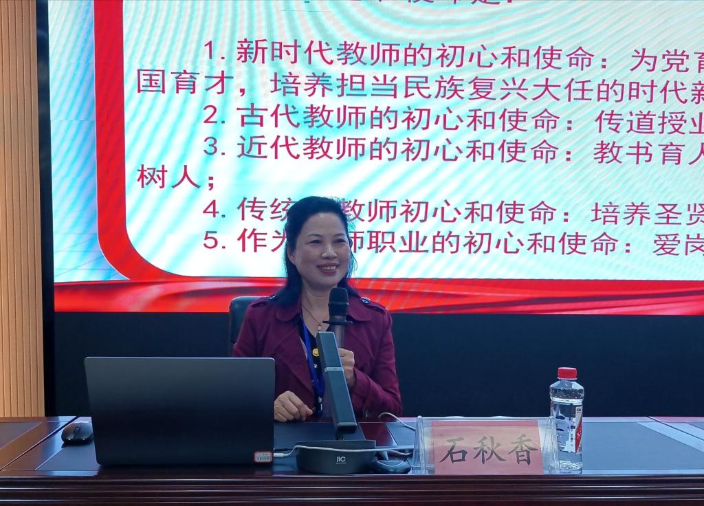 报告会上,石秋香校长以“守初心、担使命,做好教育答卷人”为题,结合自身经历,通过朴实的语言,生动的事例,深入浅出的道理,讲述了自己在平凡教师岗位上爱岗敬业、无私奉献的感人故事,用实际行动诠释了自己对劳模精神、劳动精神、工匠精神的深刻理解,为莘莘学子们上了一堂生动的“思想动员”课。石秋香校长鼓励同学们珍惜大学时光,苦读、苦练、苦学、苦寻,掌握扎实专业知识,练就过硬师范技能,坚守教育初心,牢记育人使命,充分展现新时代大学生的青春活力,勇挑新时代赋予的历史使命。