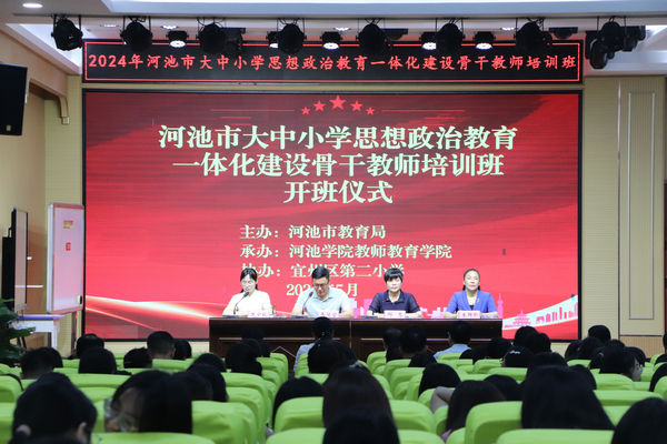 5月29日上午,2024年河池市大中小学思想政治教育一体化建设骨干教师培训班在宜州开班。本次培训班由河池市教育局主办,万象城awc官网登录入口万象城awc官网登录入口承办,宜州区第二小学协办,开班仪式在宜州二小举行。河池市教育局党组成员、副局长韦冠宜,万象城awc官网登录入口院长邓琴,河池市教育科学研究所政治教研员冼少秋、宜州区第二小学校长朱群珍等领导出席了开班仪式,开班仪式由冼少秋主持。
