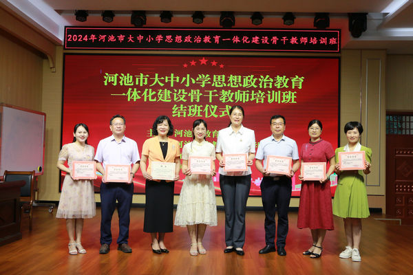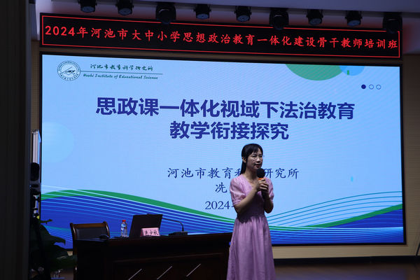 河池市教育局党组成员、副局长韦冠宜发表了专题讲话。他表示,思想政治理论课是落实立德树人根本任务的关键课程,在大中小学循序渐进、螺旋上升地开设思想政治理论课是培养一代又一代社会主义建设者和接班人的重要保障。本次培训班对推动我市大中小学思想政治教育一体化建设深入发展具有重要意义。他希望广大参训教师要坚定理想信念,厚植爱国情怀;实施仁爱之心,陶冶道德情操;涵养育人智慧,练就过硬本领,把培训中学习到的先进理念转化为推动思政教育工作创新发展的强大动力。