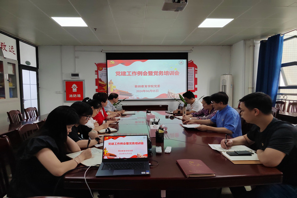 6月5日,万象城awc官网登录入口在格致楼712室召开党建工作例会暨党务培训会。学院党委书记李新富、党委副书记郭英莉、专职组织员、各支部书记到场参加了会议。