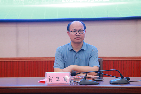 在开班仪式上,贺卫国副校长代表学校致辞,简要介绍了学校70余年的校史、办学成就和未来发展规划,特别介绍了近年来学校汉语言文学专业建设取得的成效和写作人才培养的卓越表现,同时宣传了学校建成的完备培训设施、组建的强有力培训师资、积累的丰富培训经验、打造的优质培训团队,以及在多次“国培计划”、“区培计划”、“特岗教师”岗前培训等项目上形成的良好培训口碑和成效。贺卫国强调:随着新课程改革的深入推进和高考制度的不断完善,高中语文教育面临着前所未有的机遇和挑战;举办这次高中语文骨干教师能力提升培训班,正是响应新时代教育发展的要求,贯彻落实新课标、新高考改革,新时代教育高质量发展的重要举措;希望参训教师认真学习、充分交流,将所学所得运用到实际工作中去,不断提高自己的教育教学水平,为自身职业发展和广西教育事业的繁荣发展注入新质生产力。