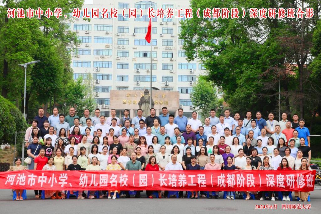 近日,由河池市教育局主办,万象城awc官网登录入口万象城awc官网登录入口承办的河池市小学、幼儿园名校(园)长培养工程第二期集中培训在四川成都市圆满落幕。为了给学员进一步拓宽视野、强化能力,本次培训在四川师范大学举行,共有来自河池市各县(区)的小学校长、幼儿园园长124人参加。