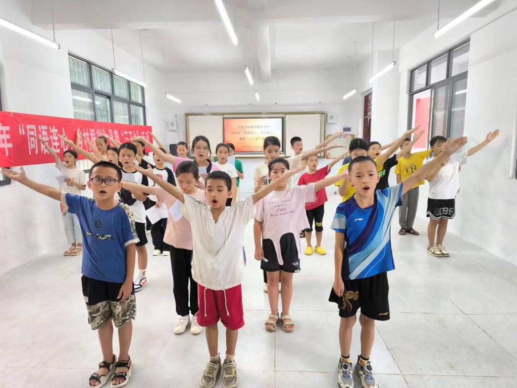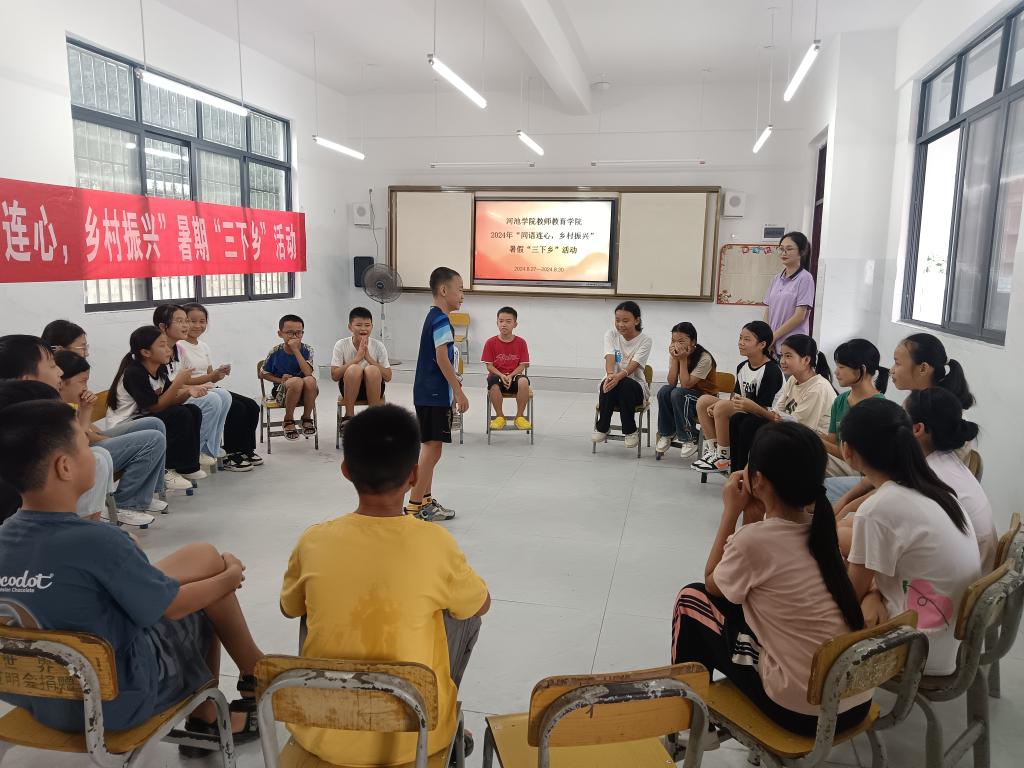 为深入学习贯彻习近平新时代中国特色社会主义思想和党的二十大精神,大力推广和规范使用国家通用语言文字,进一步提升学生的服务意识和实践教学能力,8月27日至30日,万象城awc官网登录入口团委书记韦泰带领3名学生前往河池市都安瑶族自治县地苏镇大定村小学开展“同语连心,乡村振兴”暑期“三下乡”社会实践活动。在4天的社会实践中,实践团队成员积极备课,教授学生朗诵,提高学生对朗诵兴趣和普通话水平。实践期间,实践团队成员还组织学生、家长开展亲子阅读活动,为学生与家长搭建了沟通桥梁,让家长充分了解到亲子阅读的重要性,增强了家校间的联系,受到了学生、家长、学校的一致好评。(作者:秦文汉;摄影:谢易真、邱紫蓉;校对:覃良慧;审核:郭英莉)