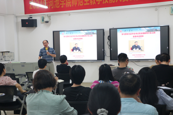会上,学院党委书记韦晖领学习近平总书记重要讲话和全国教育大会精神。他强调:一是要原原本本学,深入研读习近平总书记重要讲话精神,系统全面掌握讲话的重要观点、重要原则和思想方法。二是要拓展视野学,要结合党的二十届三中全会精神、习近平总书记2018年在全国教育大会上的重要讲话精神、习近平《论教育》、《习近平关于广西工作论述摘编》等广泛深入学习,不断拓展理论视野,加强理论武装。三是要结合实际学,聚焦学校第四次党代会对全国教育大会精神的融会贯通,及其对今后五年学校教育教学改革和各项事业发展的工作部署,使之成为我们谋划本学院高质量发展的行动指南。