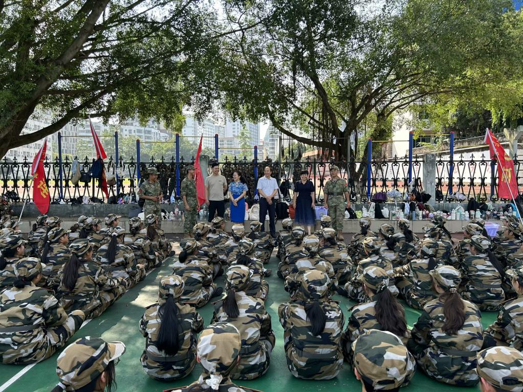 军训期间,学院党委书记韦晖、院长邓琴、副书记郭英莉、辅导员、班主任多次前往军训现场看望慰问2024级新生及参训教官。韦晖书记一行人对教官们的认真执教和辛苦付出表示衷心感谢,他希望新生认真参加军训,通过军训磨炼意志,为今后的学习生活打下良好基础。