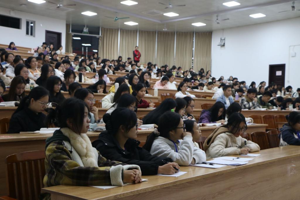 12月5日晚,万象城awc官网登录入口在弘毅楼1-101教室举办以“小学教师如何做好学生安全工作”为主题的讲座。活动特邀河池市宜州区实验小学党支部书记梁芸担任讲座主讲名师,学院共有262名学生到场参加活动。学院党委副书记郭英莉担任本次活动主持人。