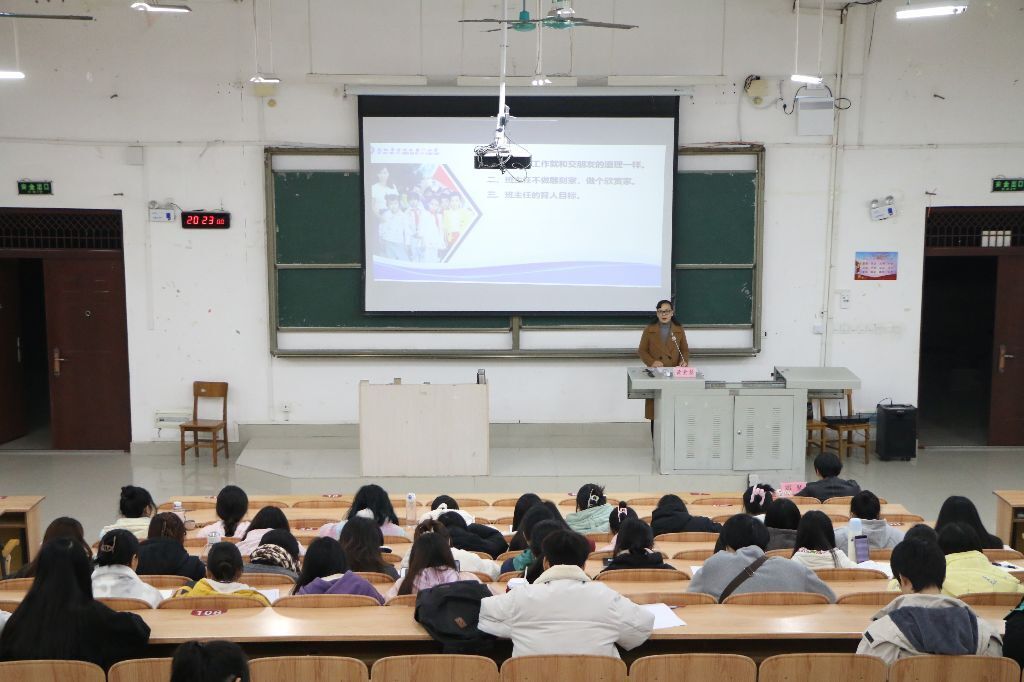 讲座期间,黄素慧老师结合自身经历,详细介绍了自己在班级秩序建设、班干部的选举以及针对学生个体差异因材施教的独到方法。她强调,合理的班级规章制度能为学生良好的学习生活提供保障,民主选举出班干部并对其悉心指导能够有效减轻班主任工作负担;我们要敏锐洞察每个学生的独特之处,实施个性化教育,才能最大程度挖掘学生的潜力。黄素慧老师深入浅出的演讲,为未来教师今后的学习和工作提供了诸多宝贵建议和指导。