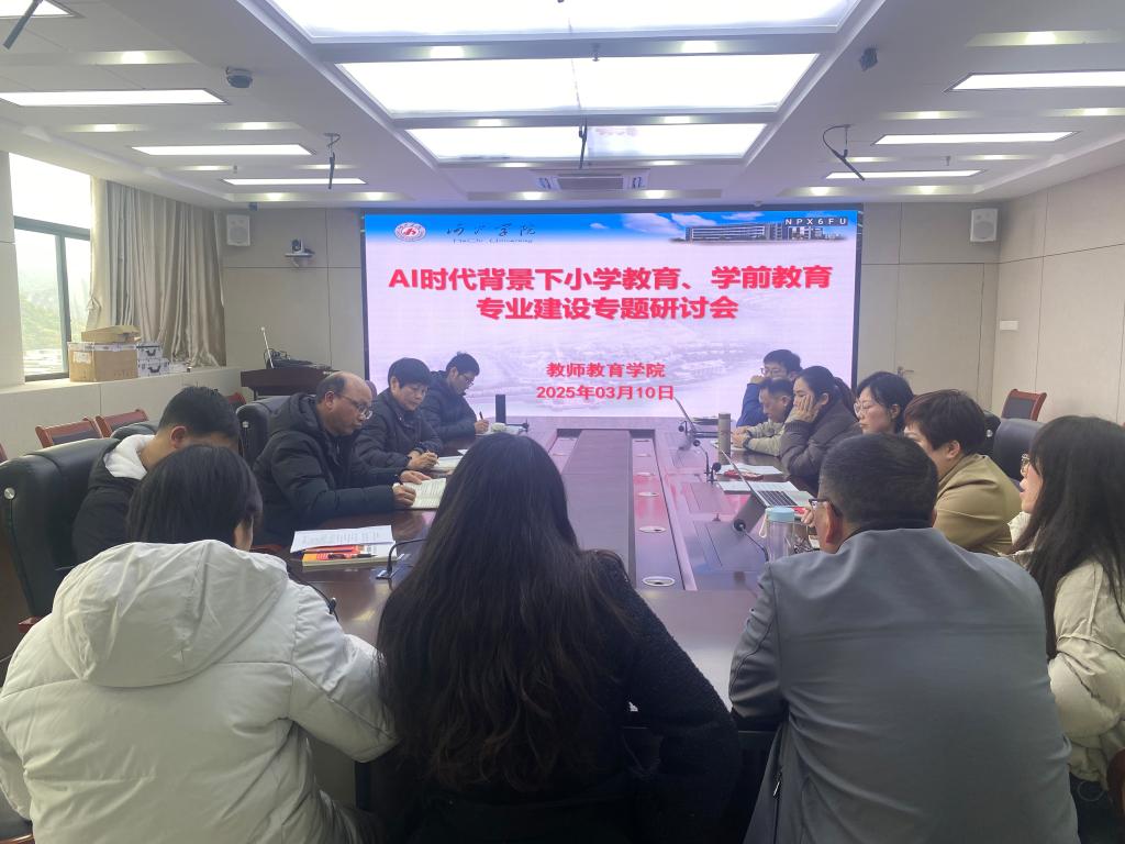 3月10日,万象城awc官网登录入口在格致楼907 召开“AI 时代背景下小学教育、学前教育专业建设专题研讨会”。本次研讨会旨在深入探讨人工智能时代给小学教育和学前教育专业带来的机遇与挑战,以及如何优化专业建设和人工智能赋能教育教学,培养适应新时代需求的小学、幼儿园复合型人才。会议由邓琴院长主持,樊仲光副院长、各专业负责人、各教研室正副主任和教师代表参加研讨会。