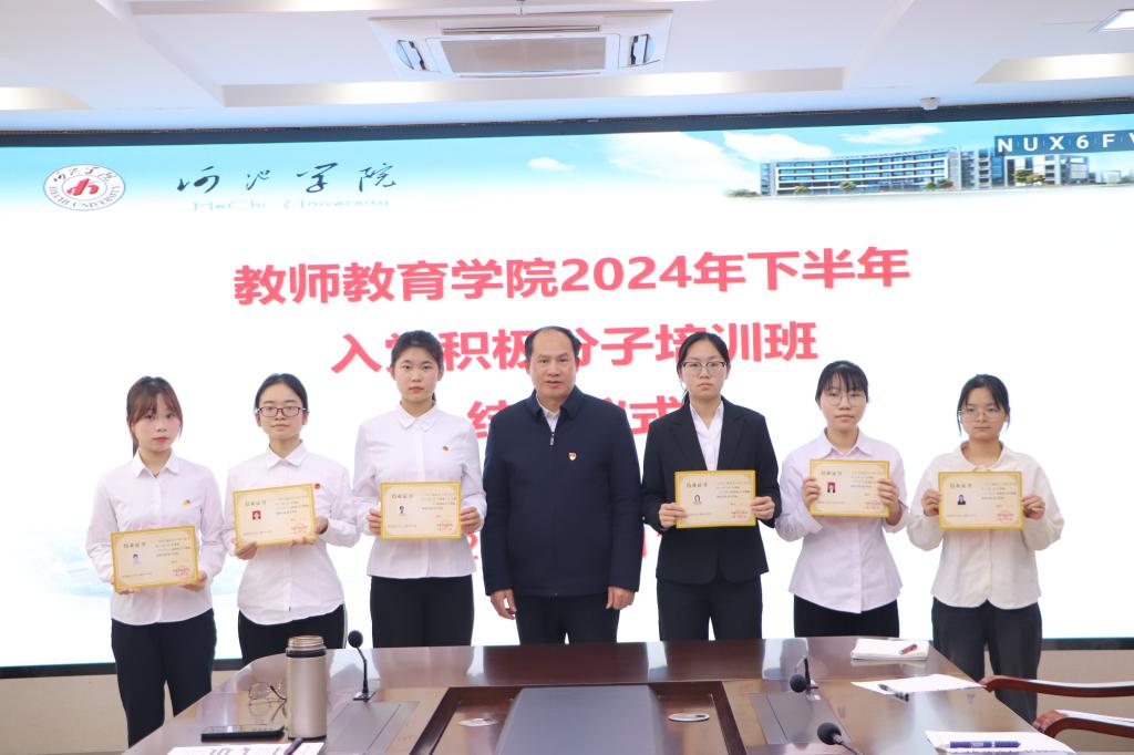 韦晖书记在讲话中希望同学们能够明晰新时代赋予的新使命,以这次培训为新的起点,深入学习贯彻习近平新时代中国特色社会主义思想,坚定理想信念,筑牢信仰之基;不断提高自身的综合素质和能力水平,励志勤奋锐进,牢记初心使命;自觉接受党组织的培养教育和考察,积极创造条件,保持积极乐观的心态,坚定不移地向党组织靠拢。随后,韦晖书记为学员代表颁发证书并合影留念。