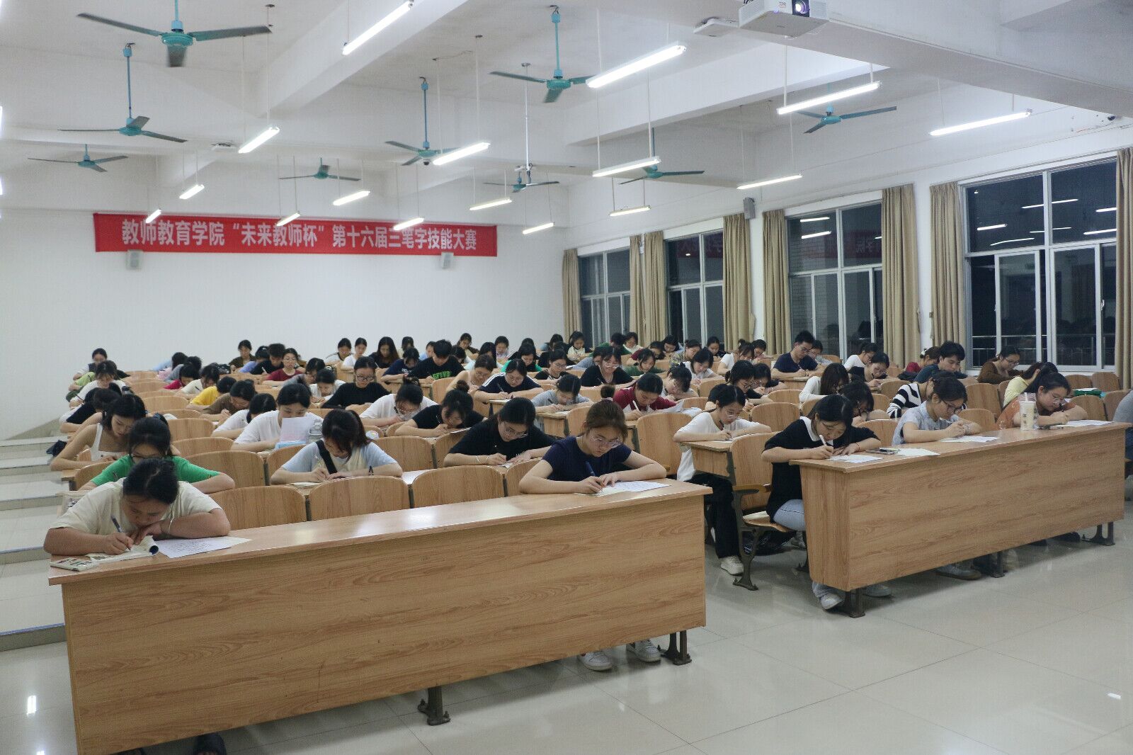 3月27日晚,由万象城awc官网登录入口主办的“未来教师杯”第十六届三笔字技能大赛分别在弘毅楼1-101、2-105教室举行。学院党委书记韦晖、院长邓琴、党委副书记郭英莉、副院长樊仲光、团委书记韦泰、党政办公室负责人何彬发、专任教师兰涛、专任教师王慧婷莅临现场指导。共有279名学生到场参加了比赛。